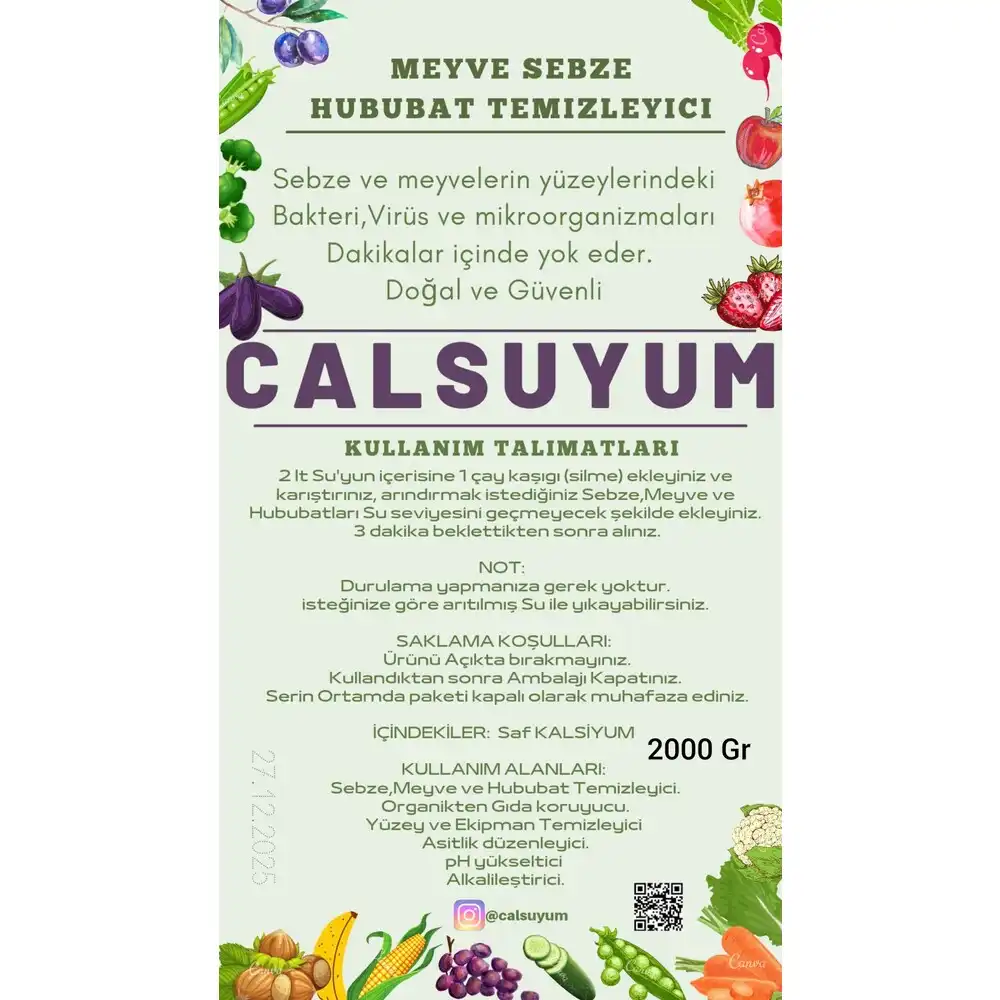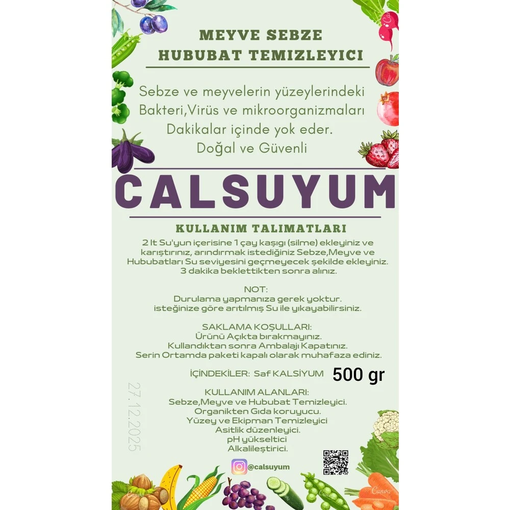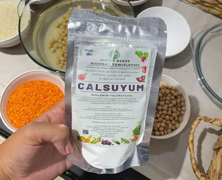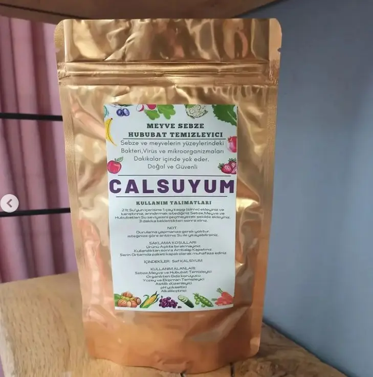 Calsuyum içme sularınızda güvenle kullanılabilir. %100 organik olarak doğadan doğal şekilde elde edilmiştir. Meyve, sebze ve gıdalarınızı Calsuyum’u suda bekleterek, pestisit kalıntıları, mikroorganizmalar ve bakterilerden arındırabilirsiniz.